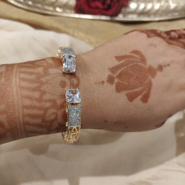 Add a touch of sparkle to your wrist with this elegant AD Diamond Stones Bracelet from Emporia Jewels. Designed with precision, this bracelet features brilliant American Diamond stones set on a sleek metal base that radiates sophistication and charm.
