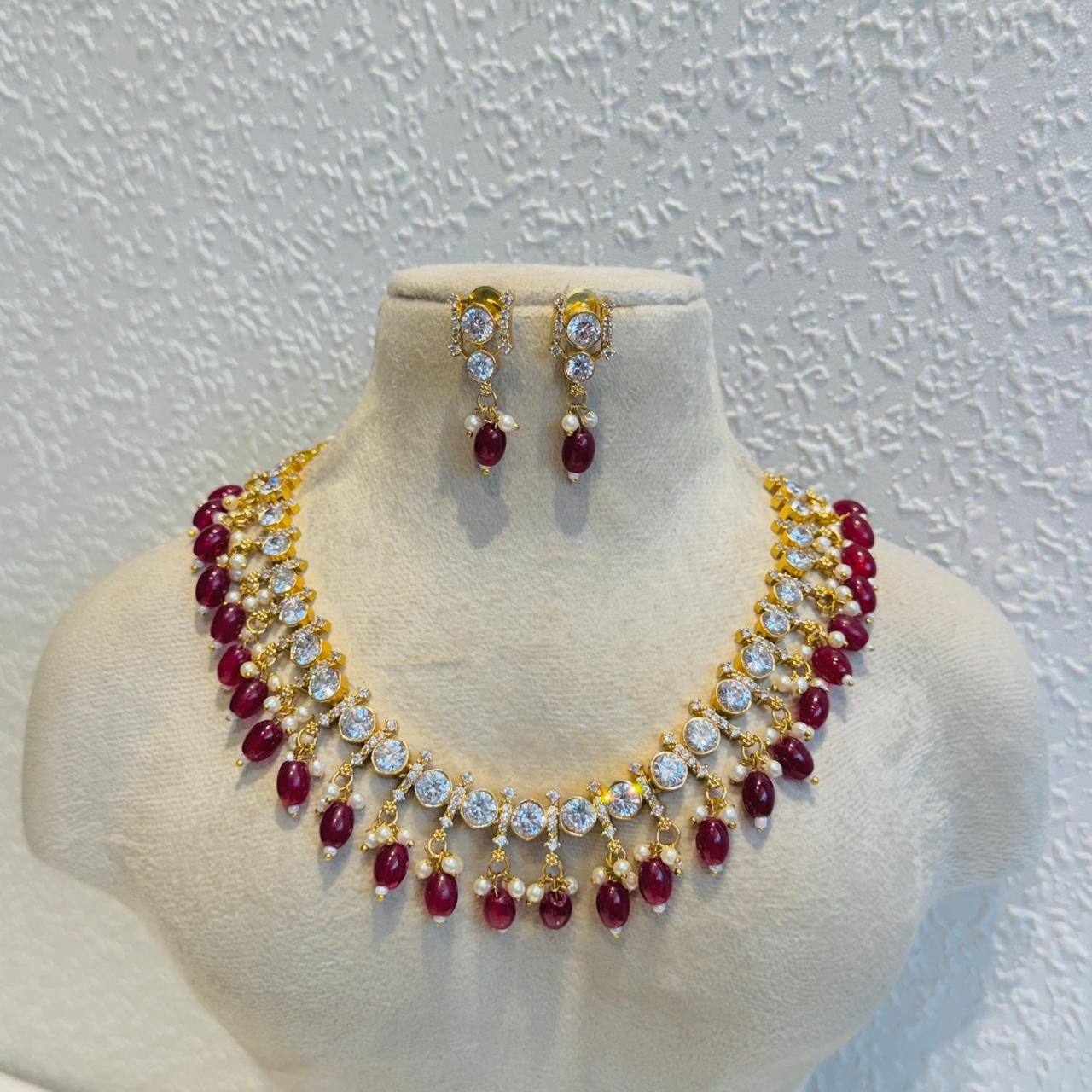 Lustrous CZ Leafy Necklace With Green Ad Stone