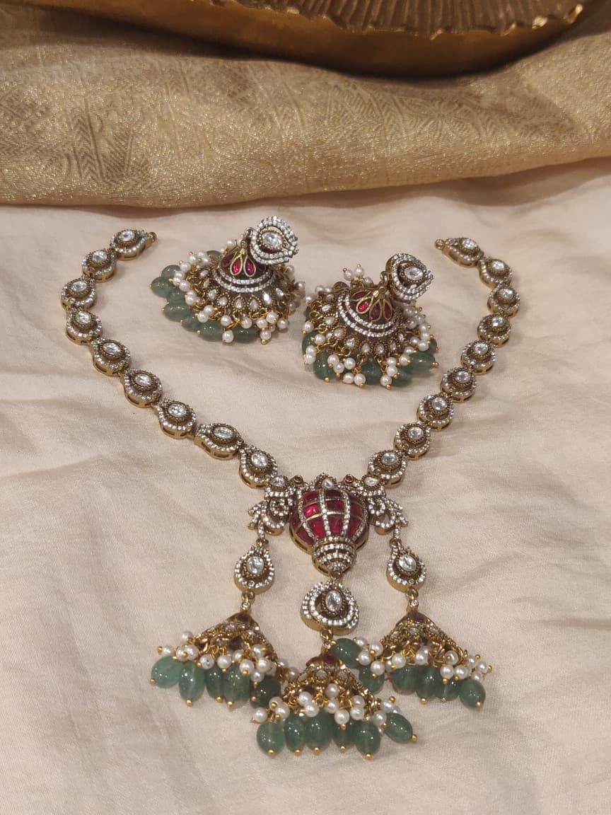 Dazzling Antiqe AD Stone Droplet Necklace