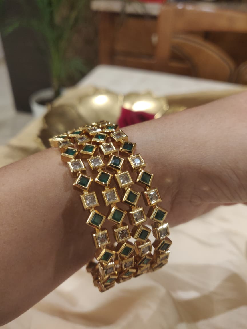Dazzling B Box Design AD Crystal Green Stone Bangles