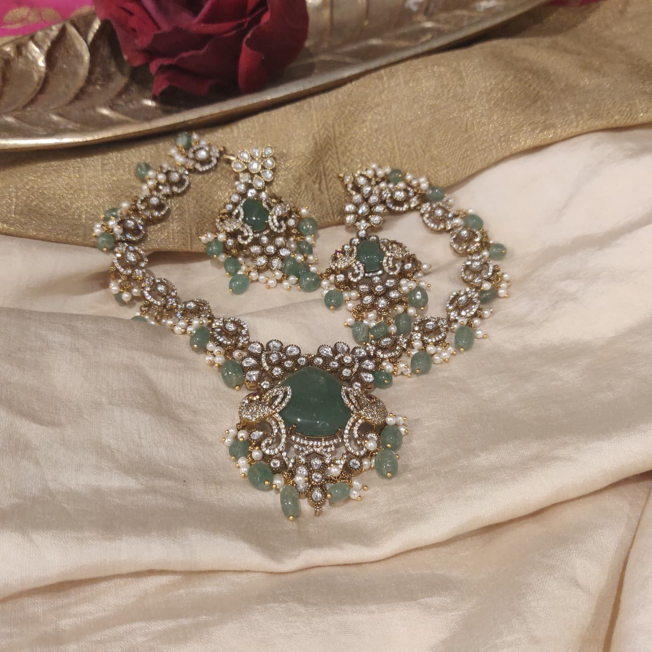 Be the first to review “Dazzling Peacock Green Stone Necklace” Cancel reply