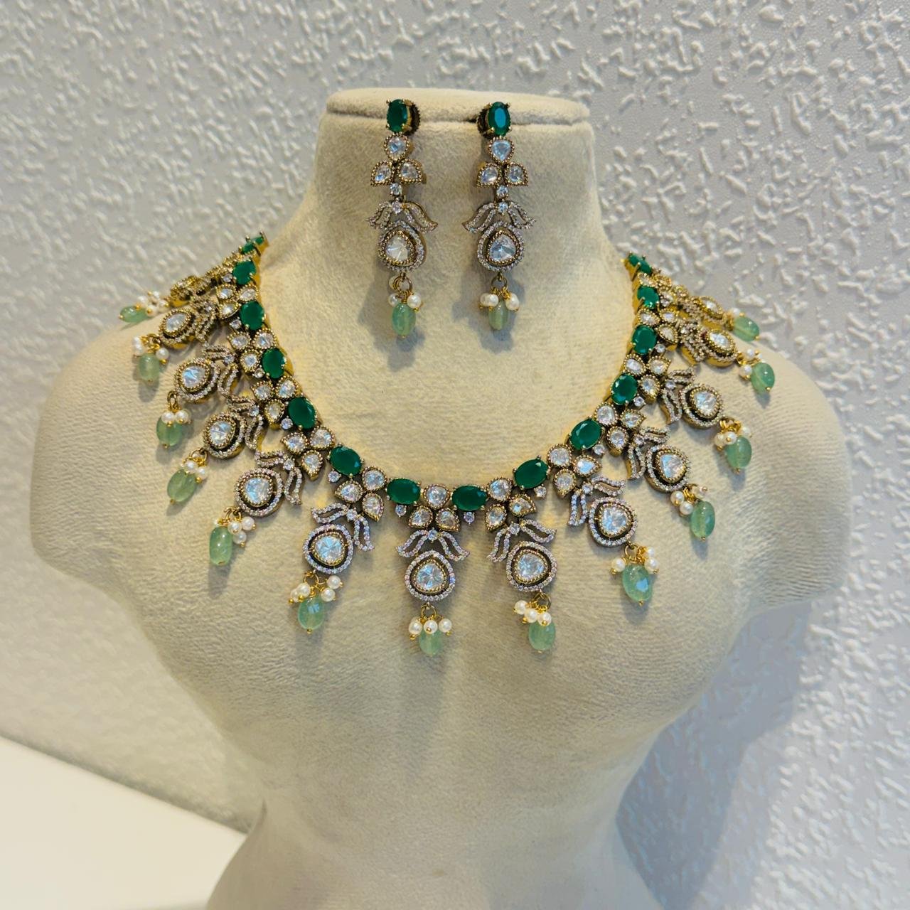 Be the first to review “Divine Green Crystal Stone Droplet Choker With Lightgreen Beads” Cancel reply
