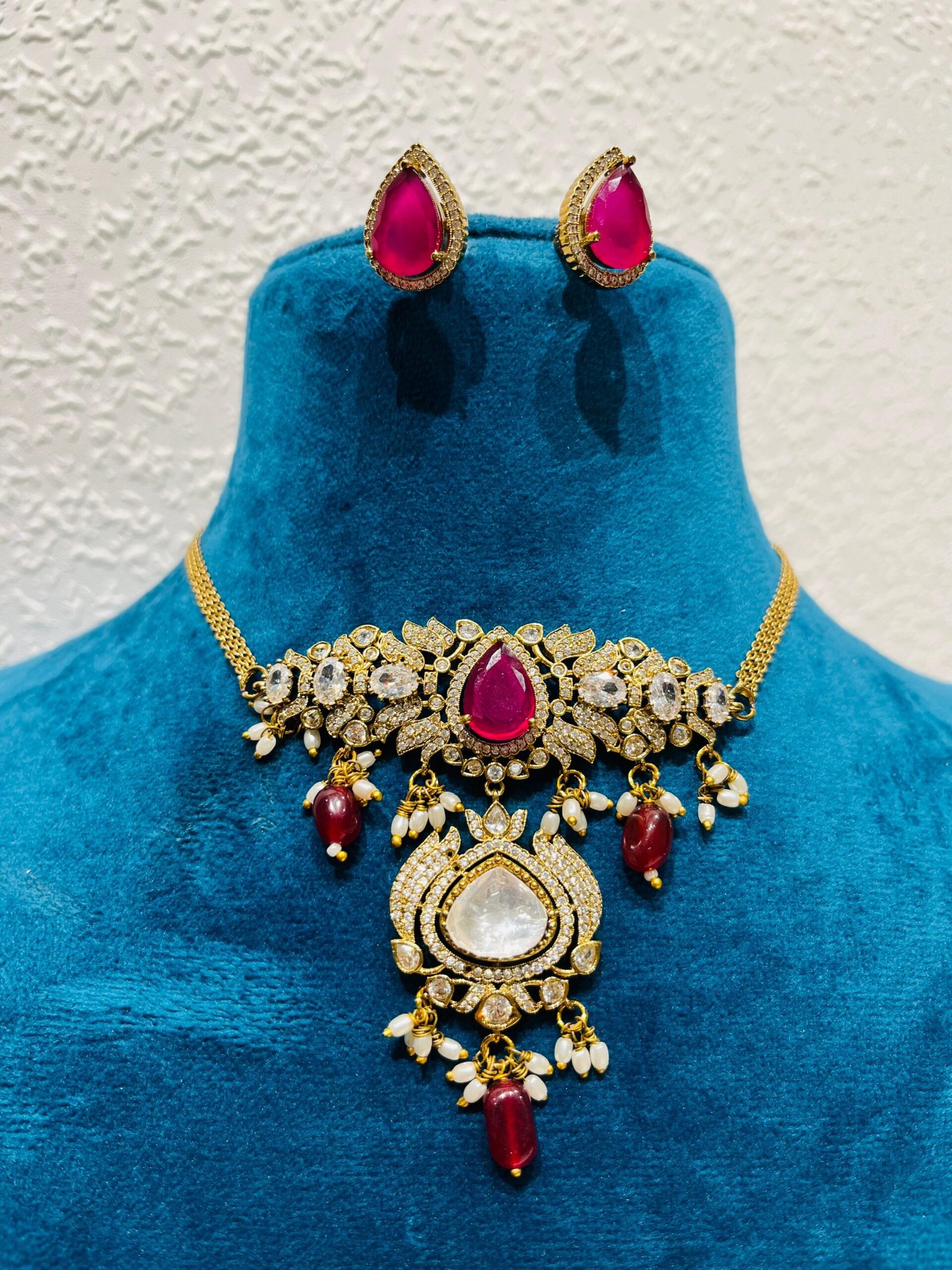 Be the first to review “Elegant bridal big stone white and red stone necklace” Cancel reply