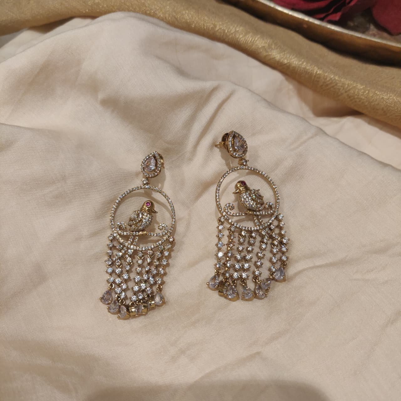 Elegant Droplet Peacock Crystal Stone Jhumka