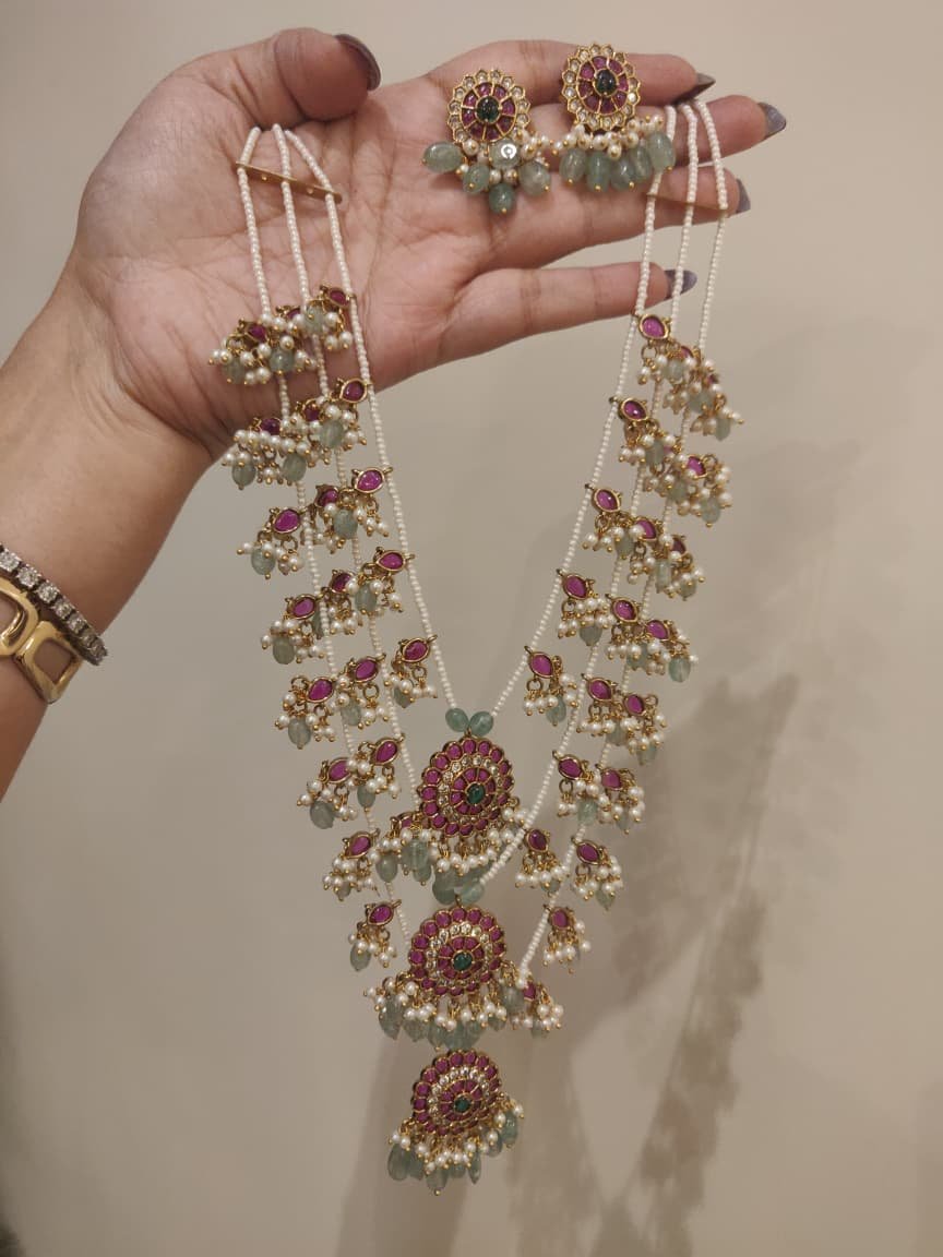 Complete Bridal Look: This long haram is designed to provide a layered, grand appearance, making it the perfect centerpiece for a bridal jewelry ensemble