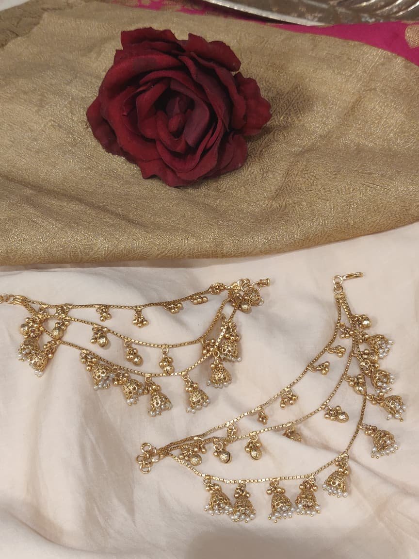 Exquisite Golden 3 Layer White Pearl Earchain