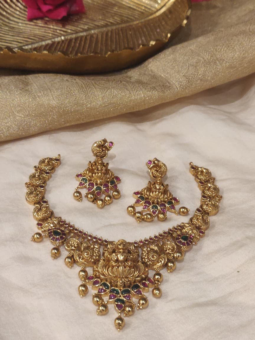 EJ Limited Edition Antique Finish Lakshmi PendantTemple Short Necklace