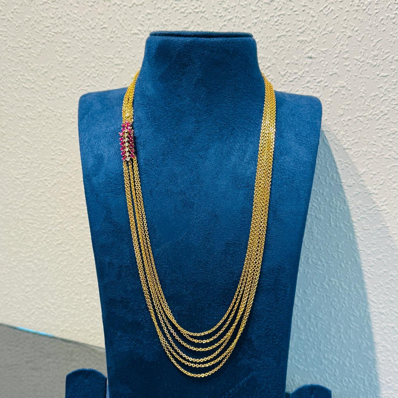 Exquisite Multilayer Golden Chain With Ruby AD Stone