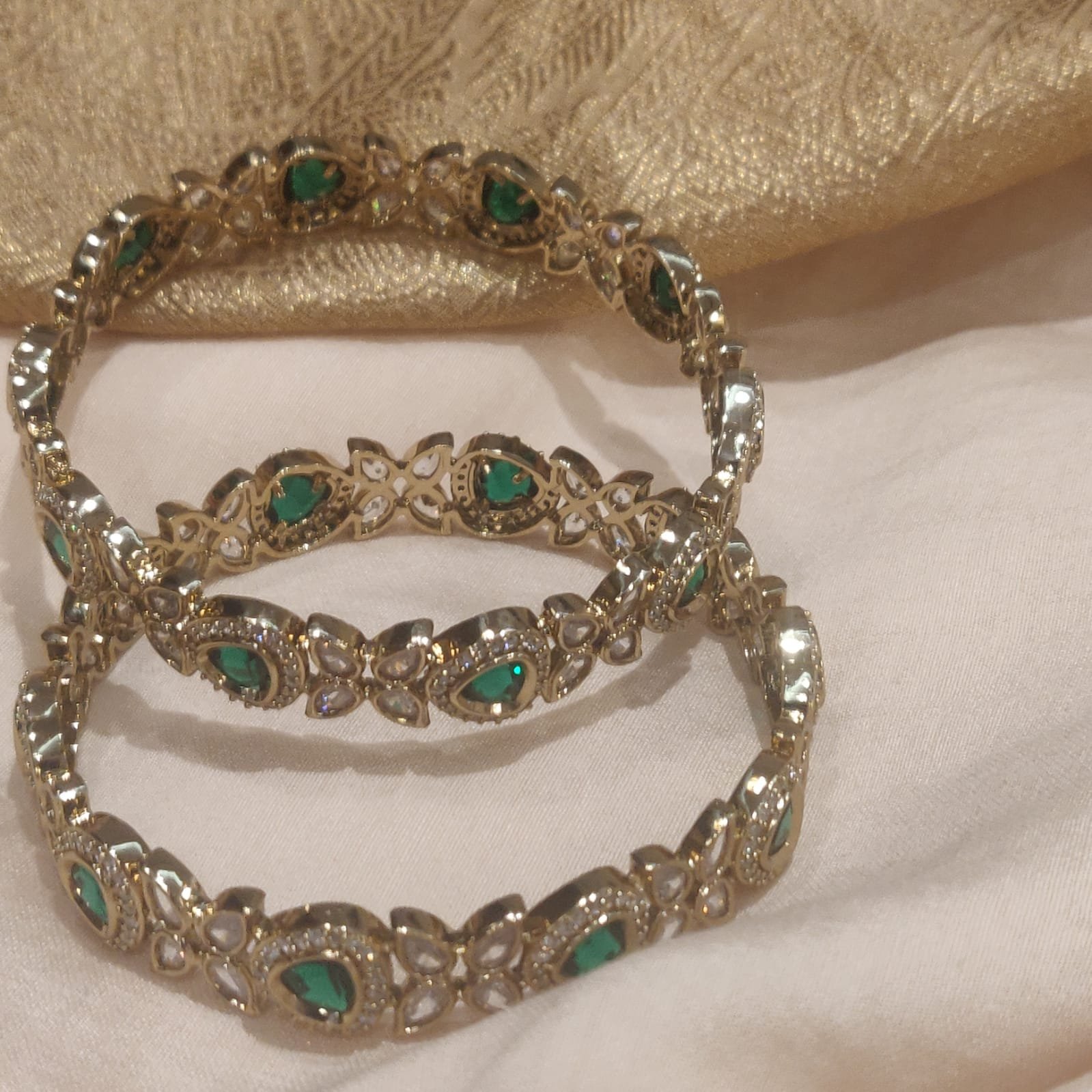 Be the first to review “Glamorous Crystal Green Ad Stone Leafs Bangles Set of 2” Cancel reply