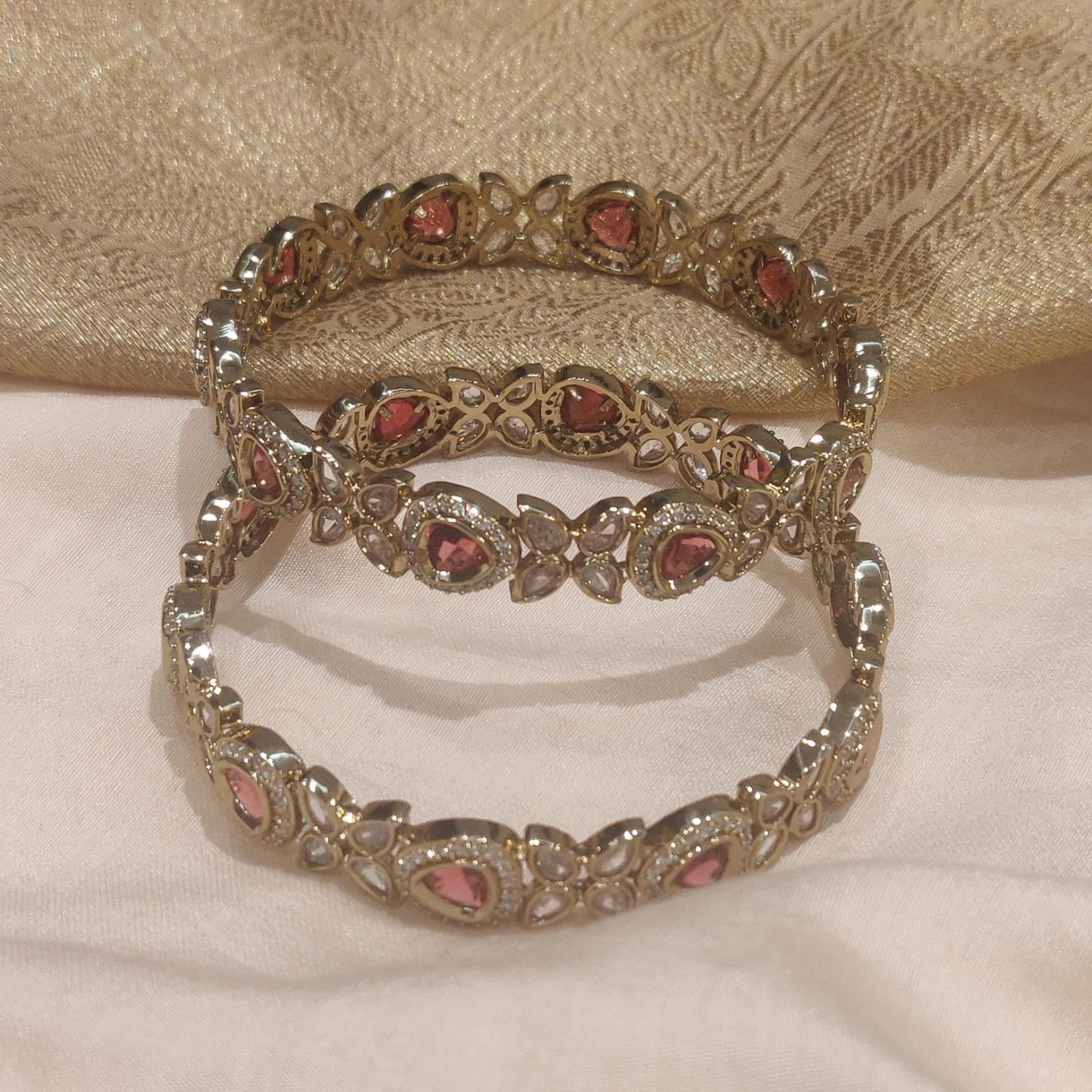 Be the first to review “Glamorous Crystal Red Ad Stone Leafs Bangles Set of 2” Cancel reply