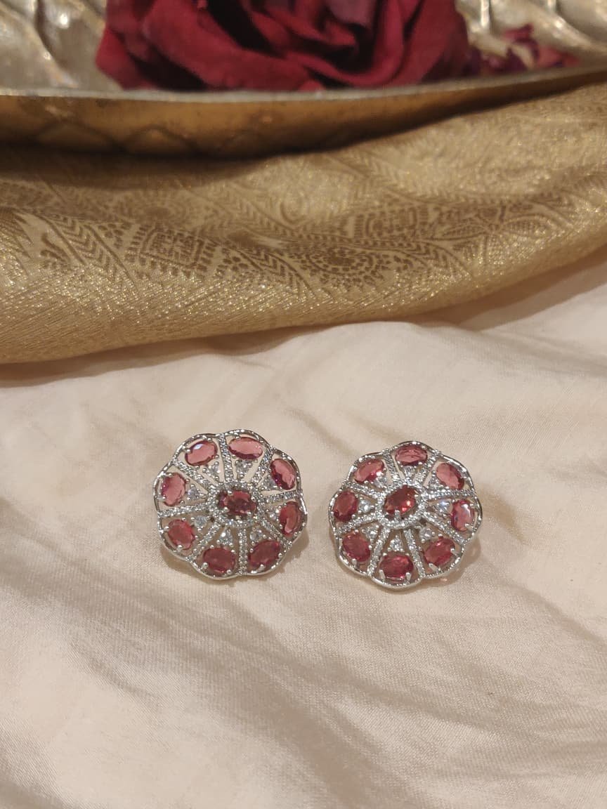 Graceful CZ REd Stone Floral Earrings
