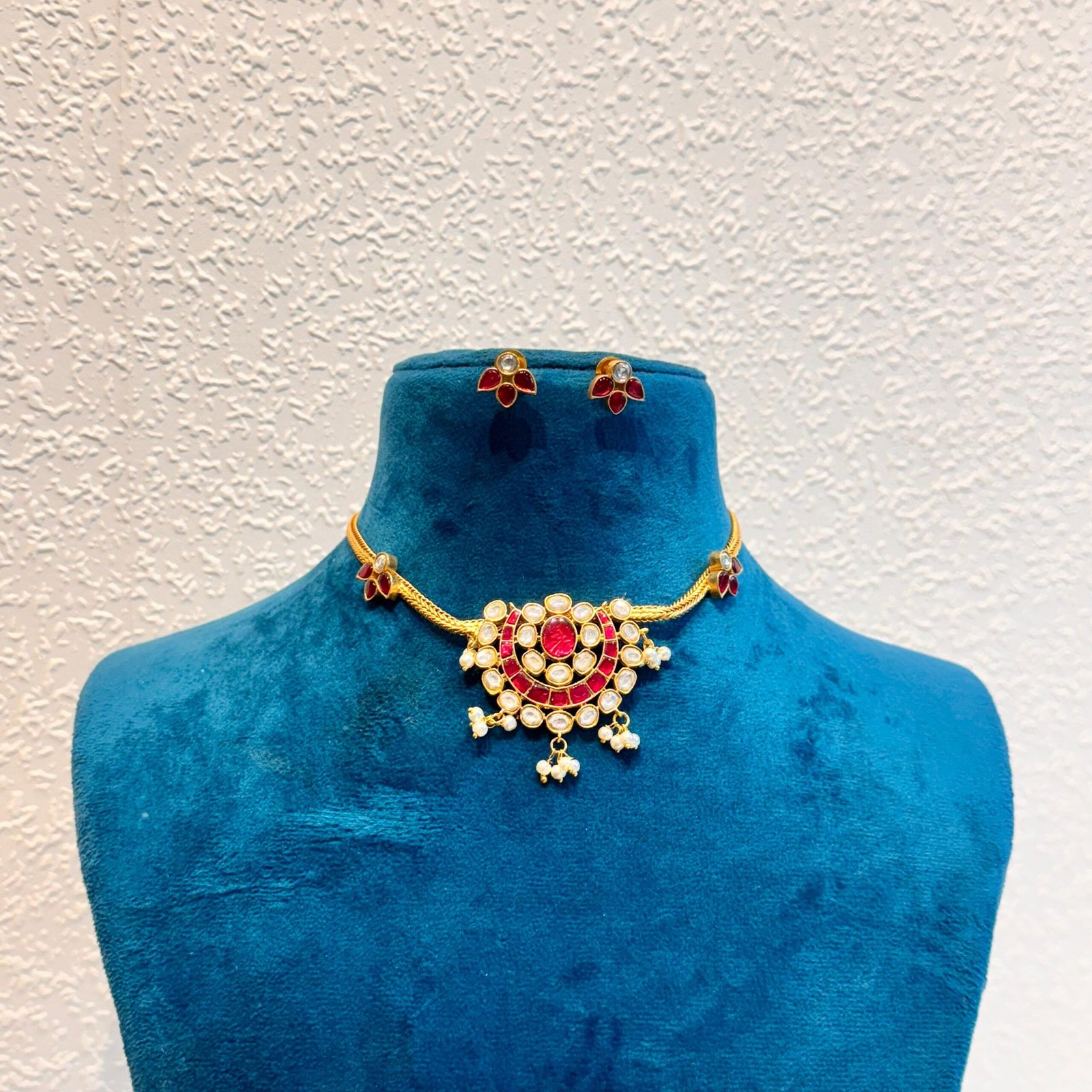 Be the first to review “Graceful half moon bridal ruby and golden choker necklace” Cancel reply