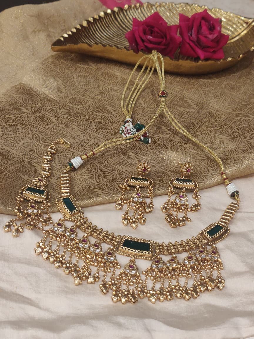 Tags: Artificial Jewellery, Brass, Bridal, Gold, Necklace, Premium