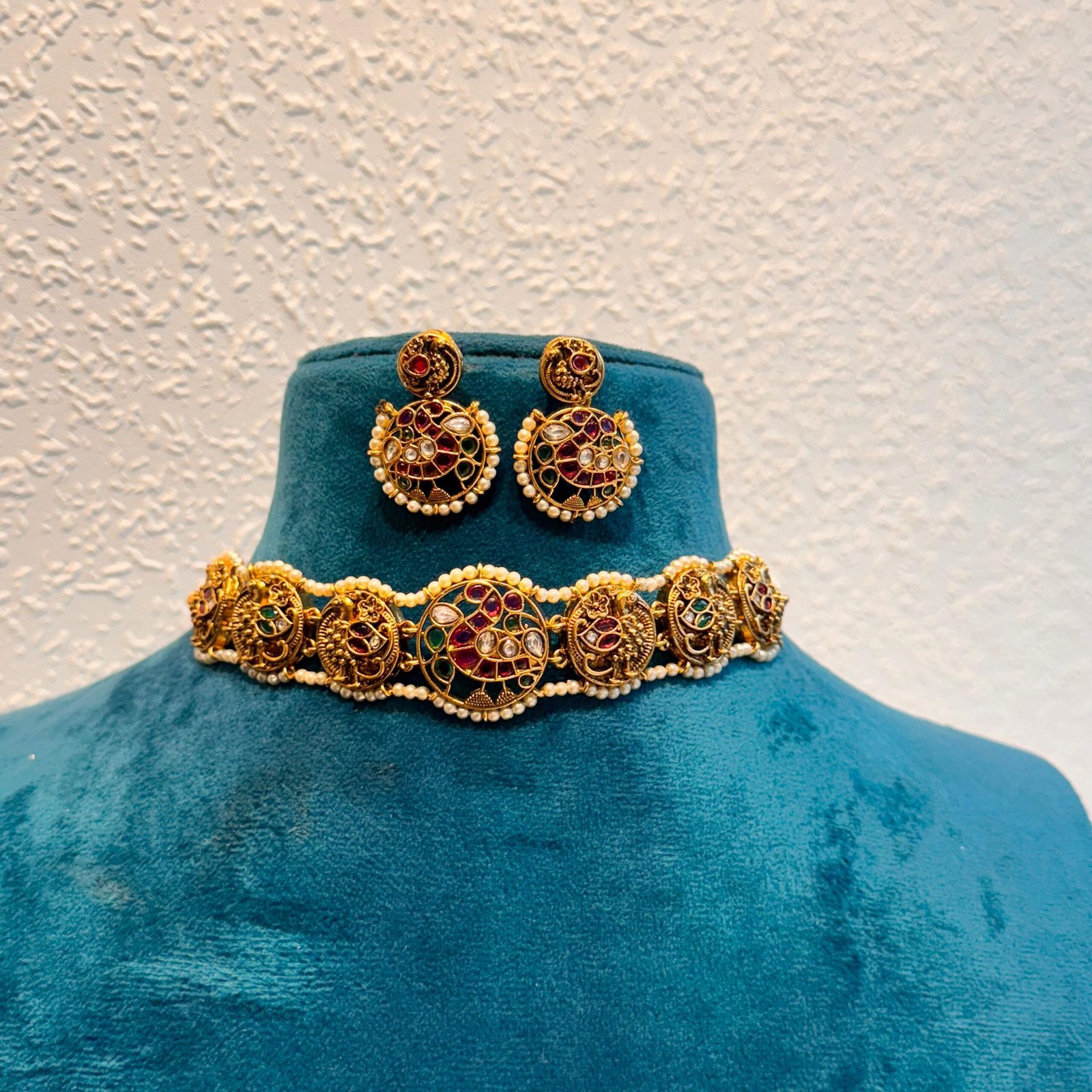 Be the first to review “Inimitable bridal peacock with ad diamond and pearls choker necklace” Cancel reply