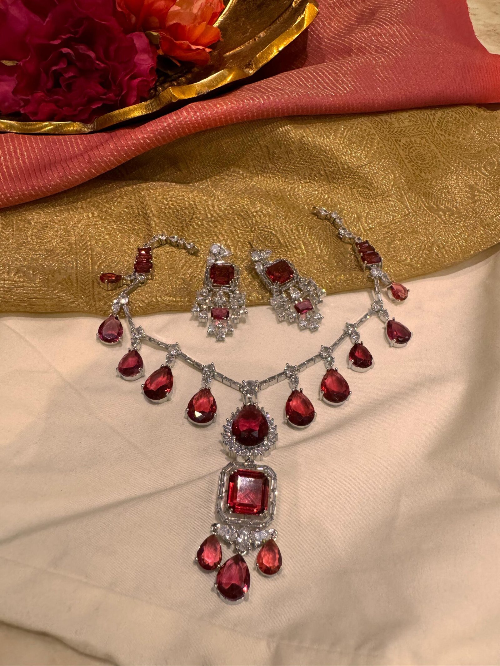 Be the first to review “Lustrous CZ Necklace With Red AD stoen” Cancel reply
