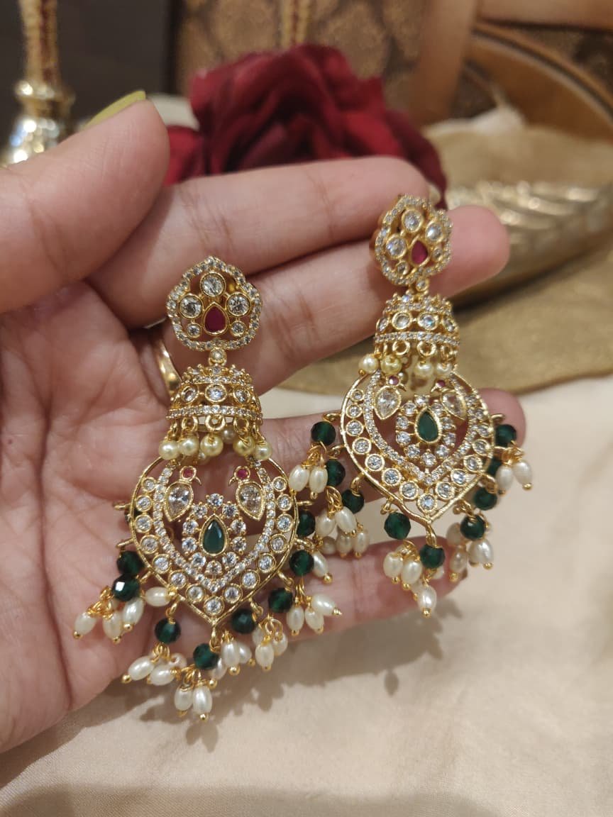 Graceful Peacock Design Gold Plated Pearl Styled AD Earrings