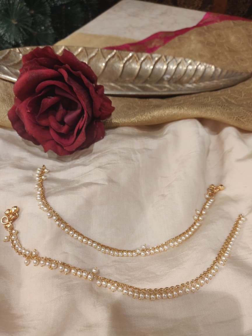 Lustrous golden White Pearl Payal