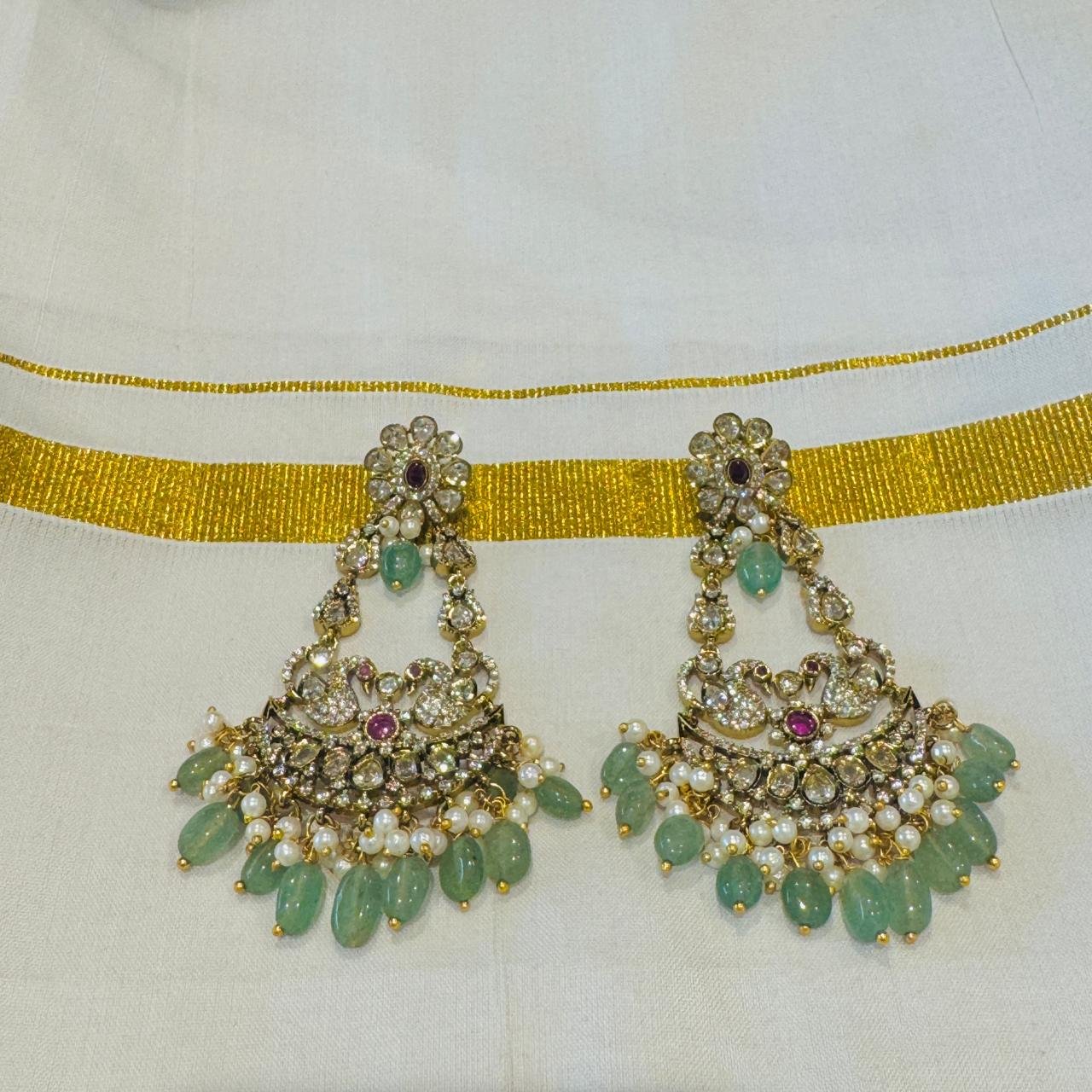 Majestic Floral Peacock Earring With Light Green Beads