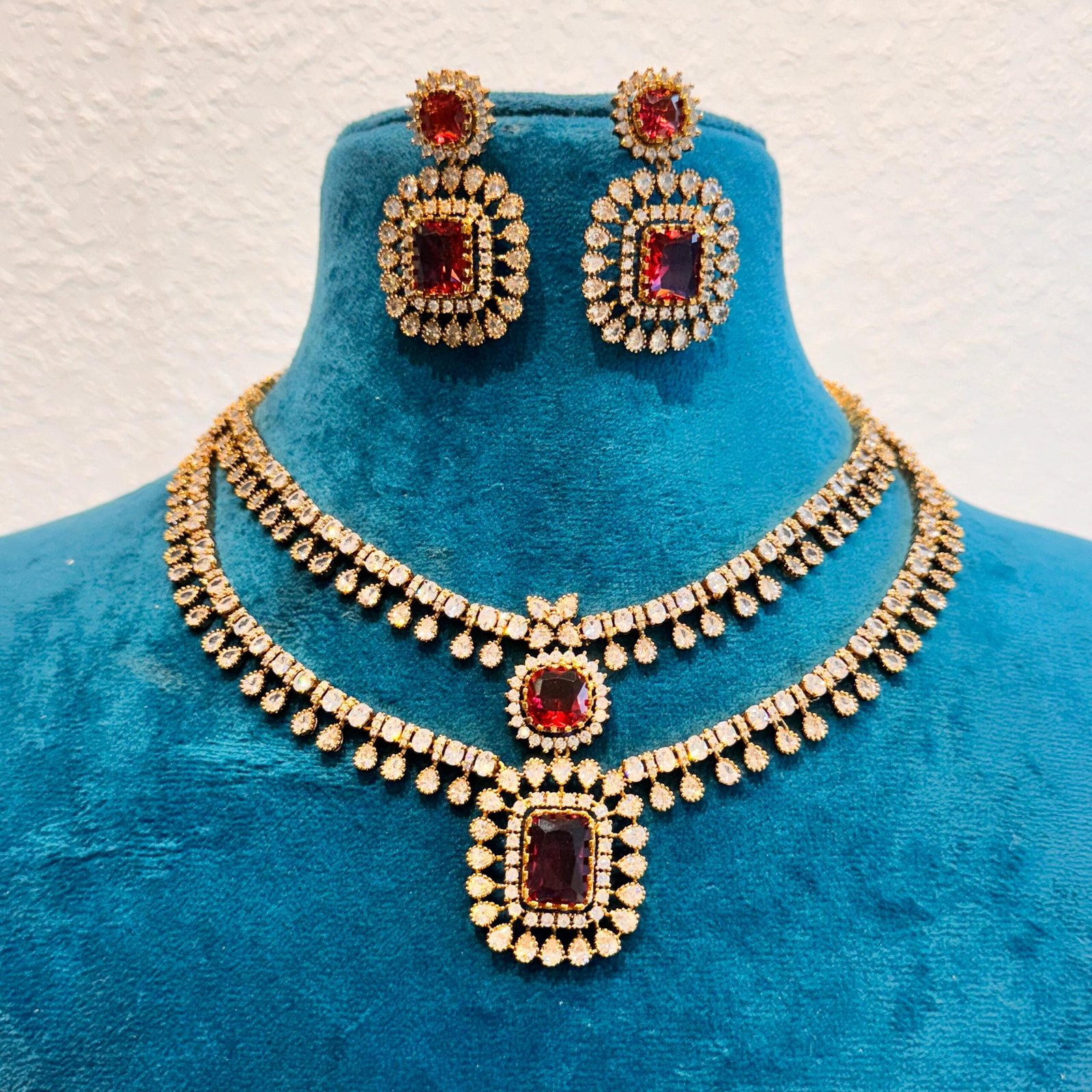 Mesmerizing Captivating 2 layer ad diamond and ruby stone necklace
