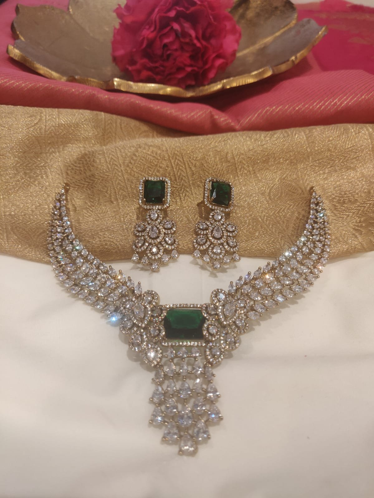 Be the first to review “Opulent Crystal AD Floral Droplet Neckalce with Green AD Stone” Cancel reply