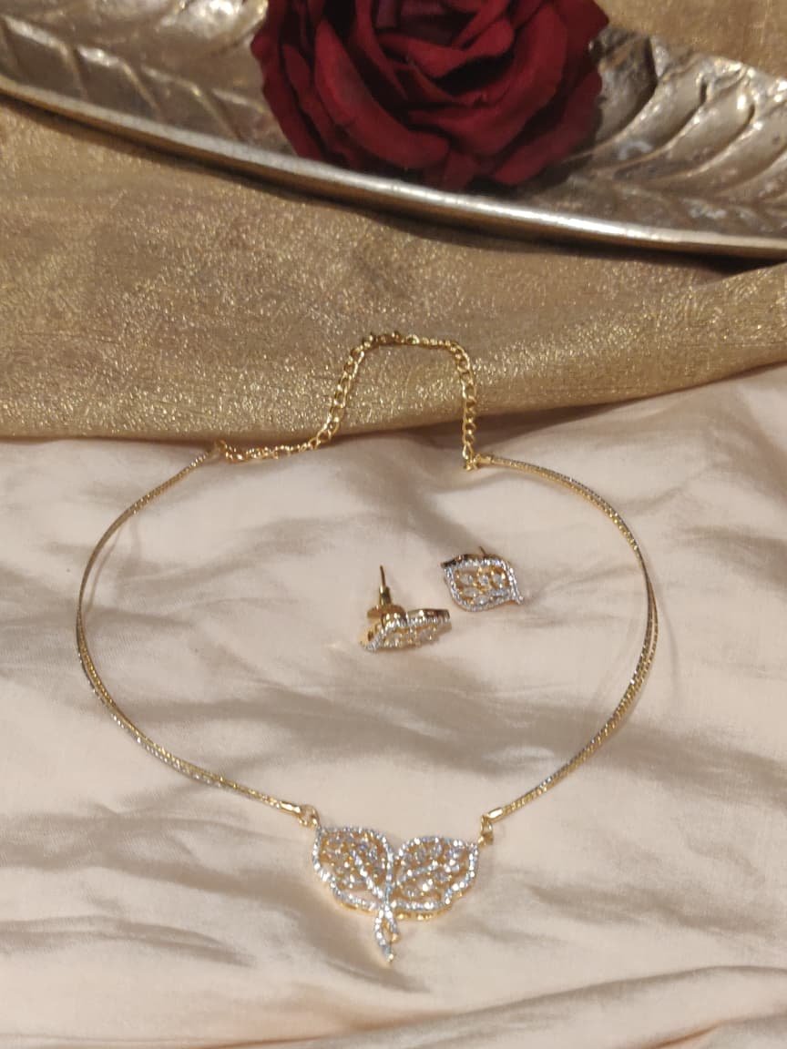Beautiful spiral design with ad stone and golden chain choker necklace