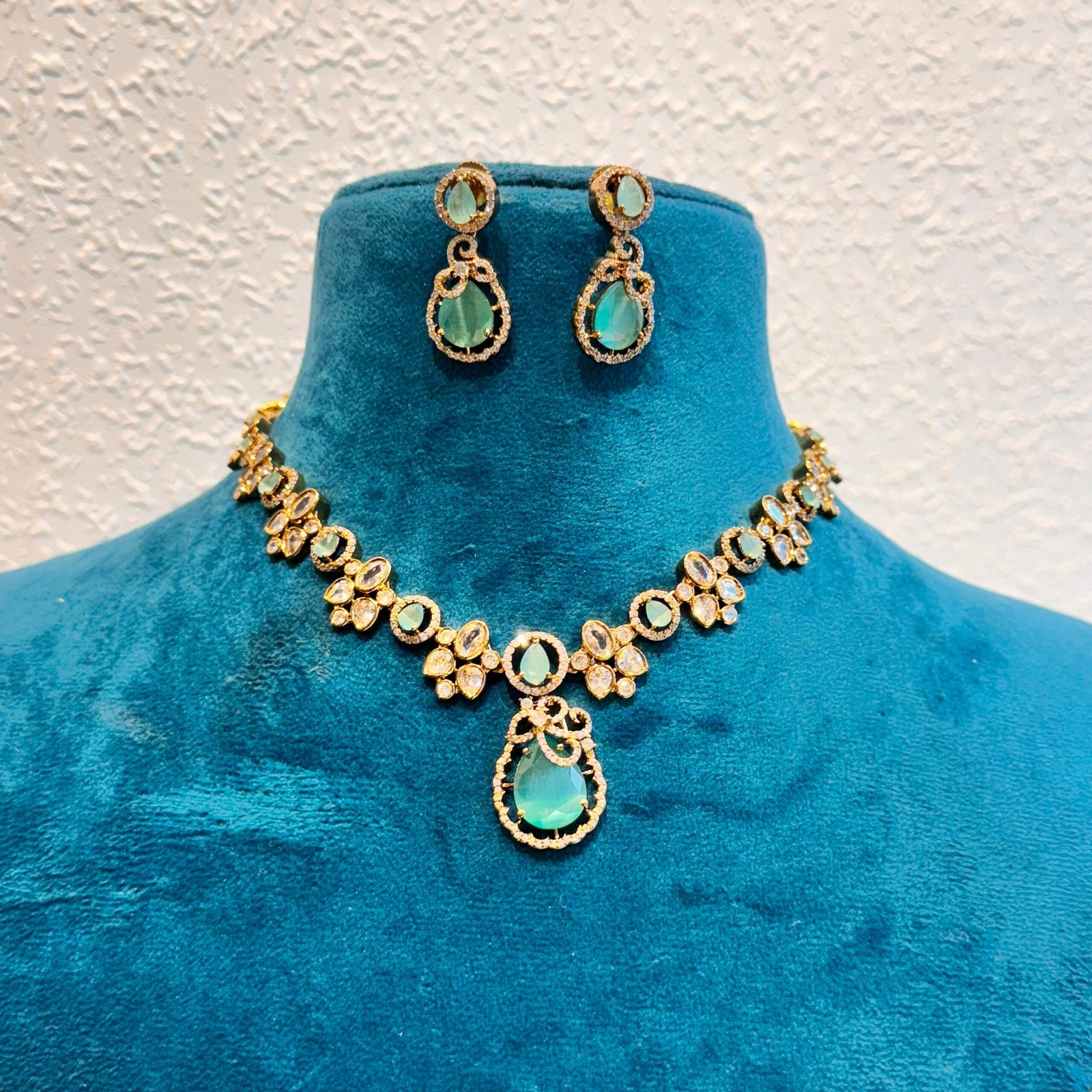Premium Designer Long Green AD Necklace