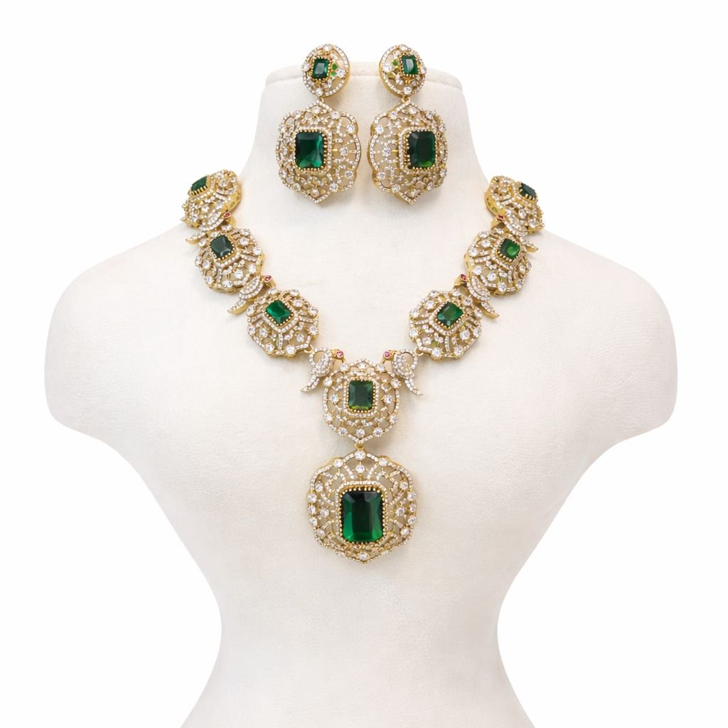 Pinnacle Green AD Stone Peacock Necklace