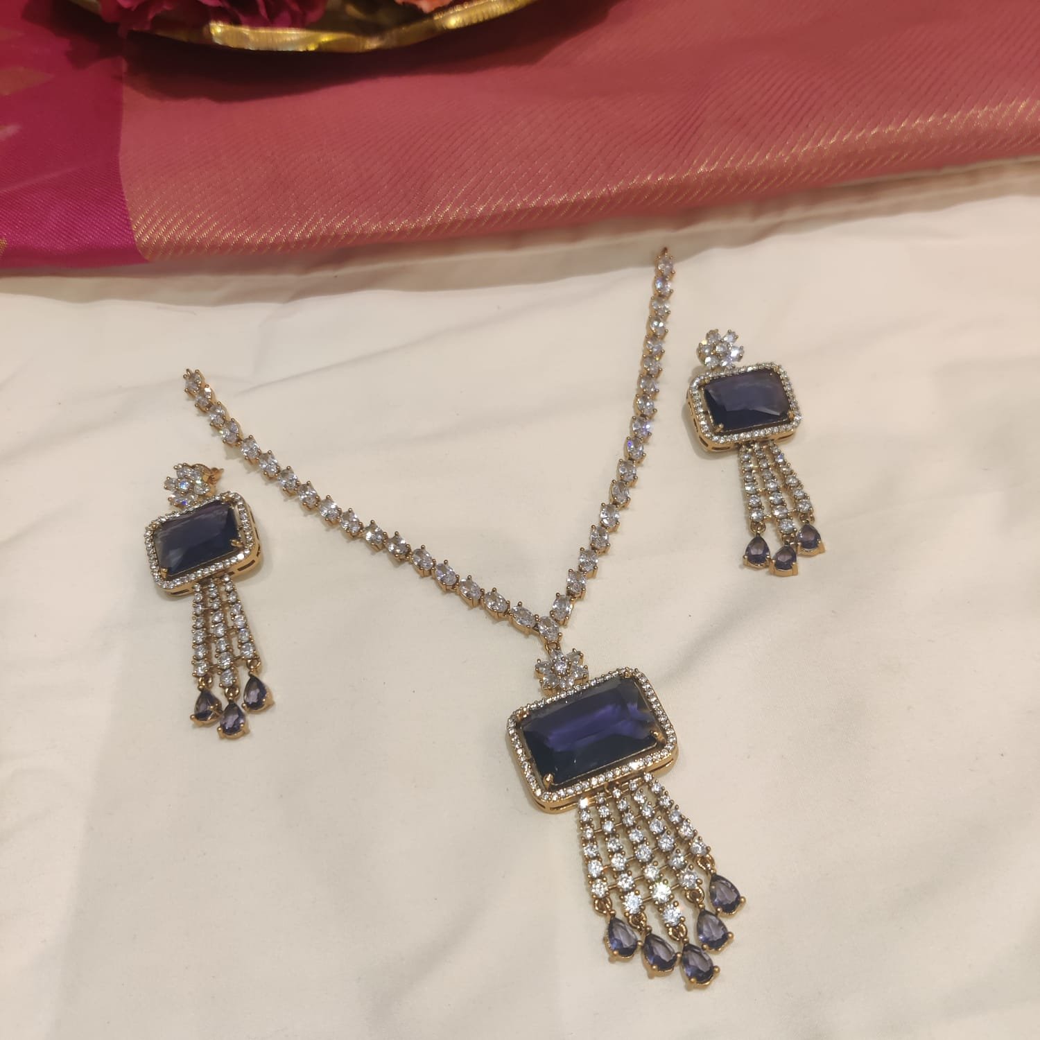 Be the first to review “Radiant Crystal Ad Necklace With Droplet Purple AD Stone” Cancel reply