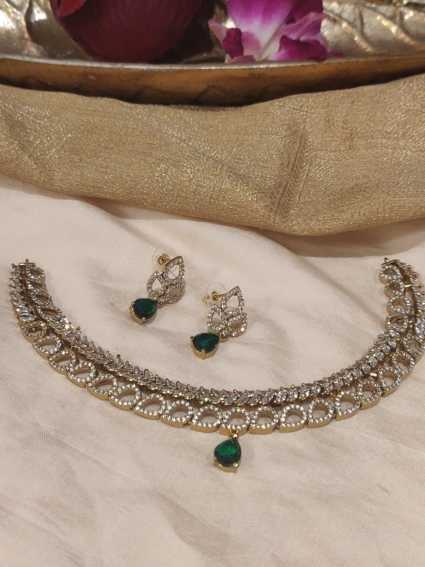 Radiant Crystal AD Stone Choker With Green Stone