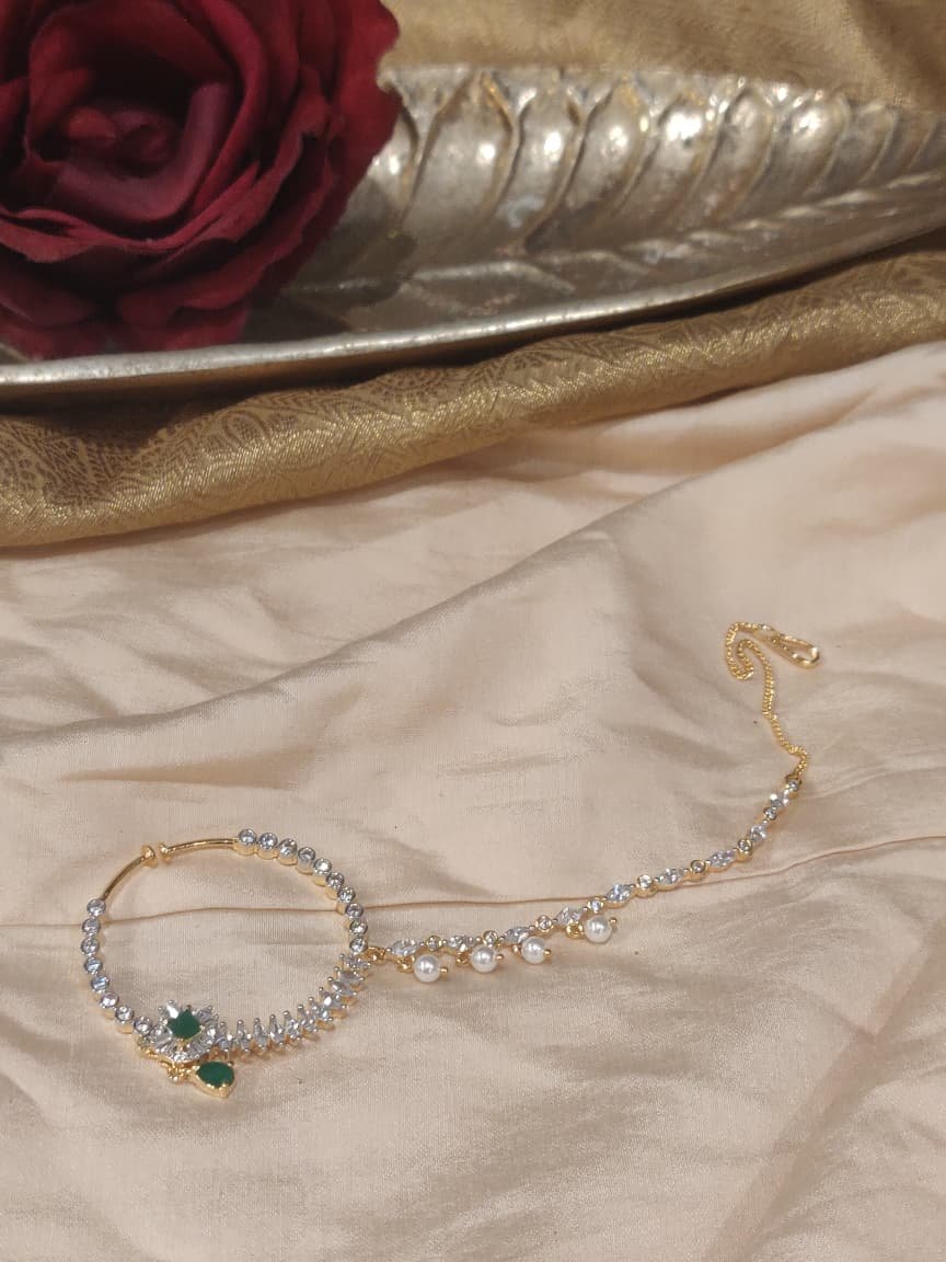 Radiant CZ Green Stone Nose Ring With white Pearls