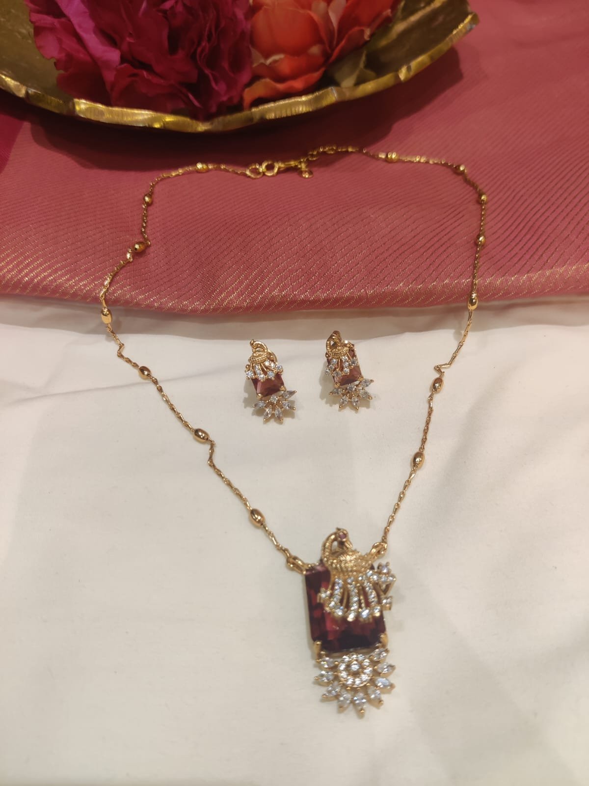 Be the first to review “Radiant Red AD Stone Peacock Chain” Cancel reply