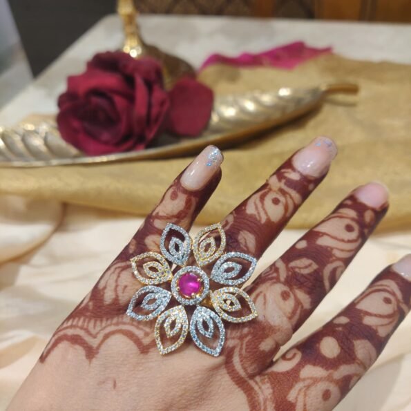 Sought CZ Ruby Stone Floral Ring