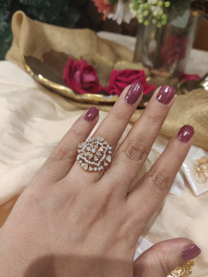 Add instant sparkle to your look with the Radiant Crystal Cluster Ring. Featuring a dazzling clustered arrangement of shimmering stones, this statement piece brings elegance and brilliance to festive, party, or special-occasion outfits while remaining comfortable to wear.