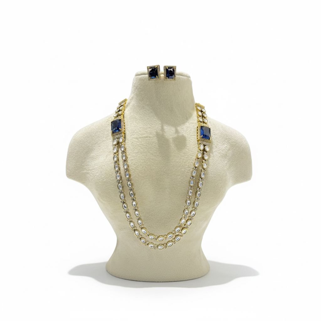 Sparkling 2 Layer Crystal Ad Stone Necklace With Bluestone