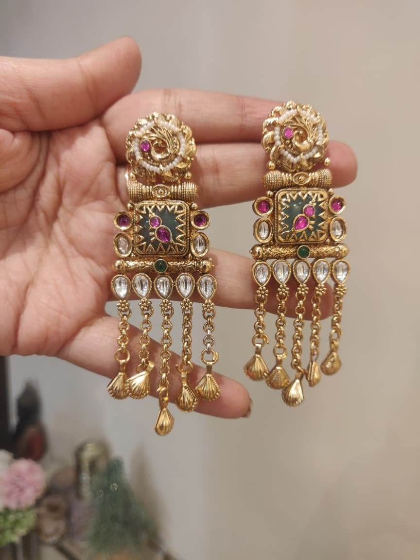 Graceful Peacock Design Gold Plated Pearl Styled AD Earrings