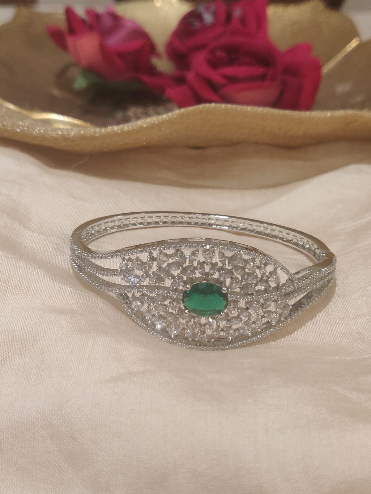 Be the first to review “Timeless CZ Floral Green Ad Stone Kada” Cancel reply