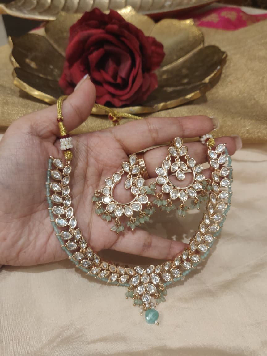 Timeless kundan Stone Necklace With Lighgreen Beads